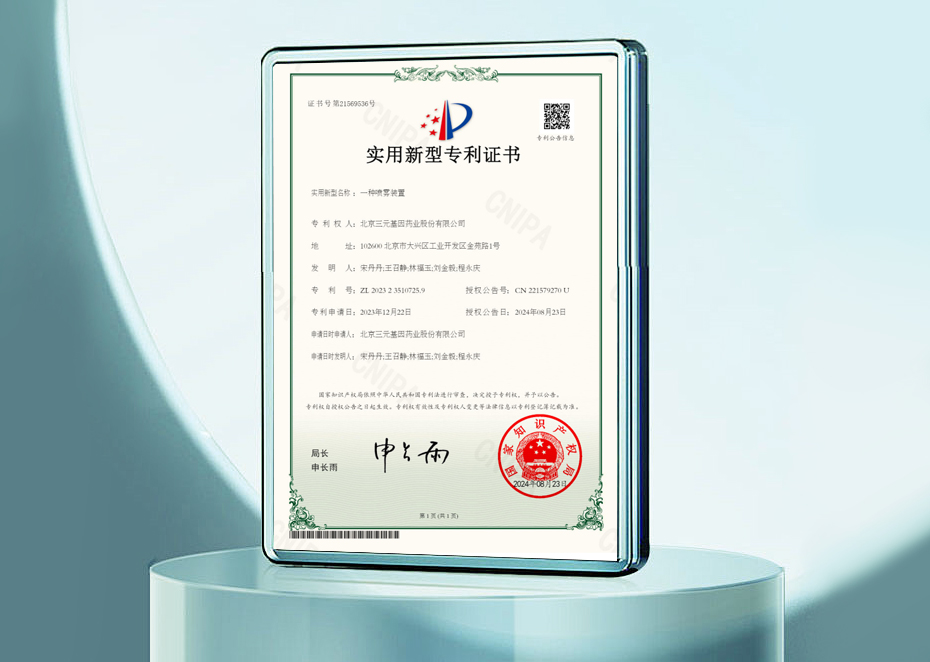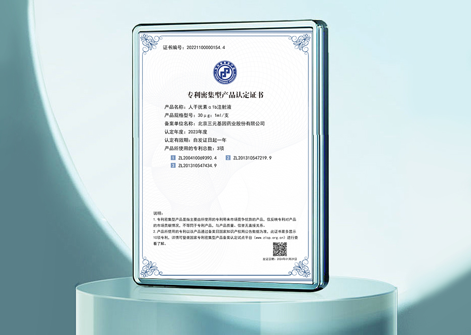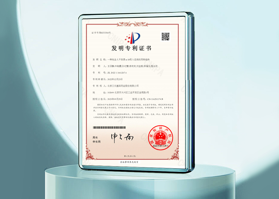 發明專利證書-一種包含人干擾素 α 1b吸入溶液的藥物組件