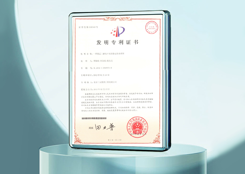 發明專利證書-一種聚乙二醇化干擾素穩定的水溶液