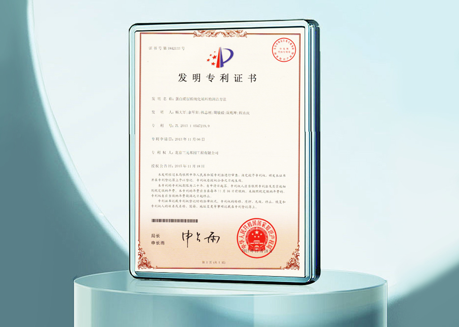 發明專利證書-蛋白質層析純化填料的清潔方法