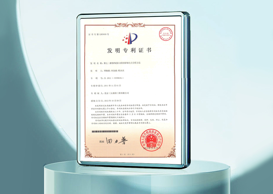 發明專利證書-聚乙二醇修飾蛋白質的修飾位點分析方法