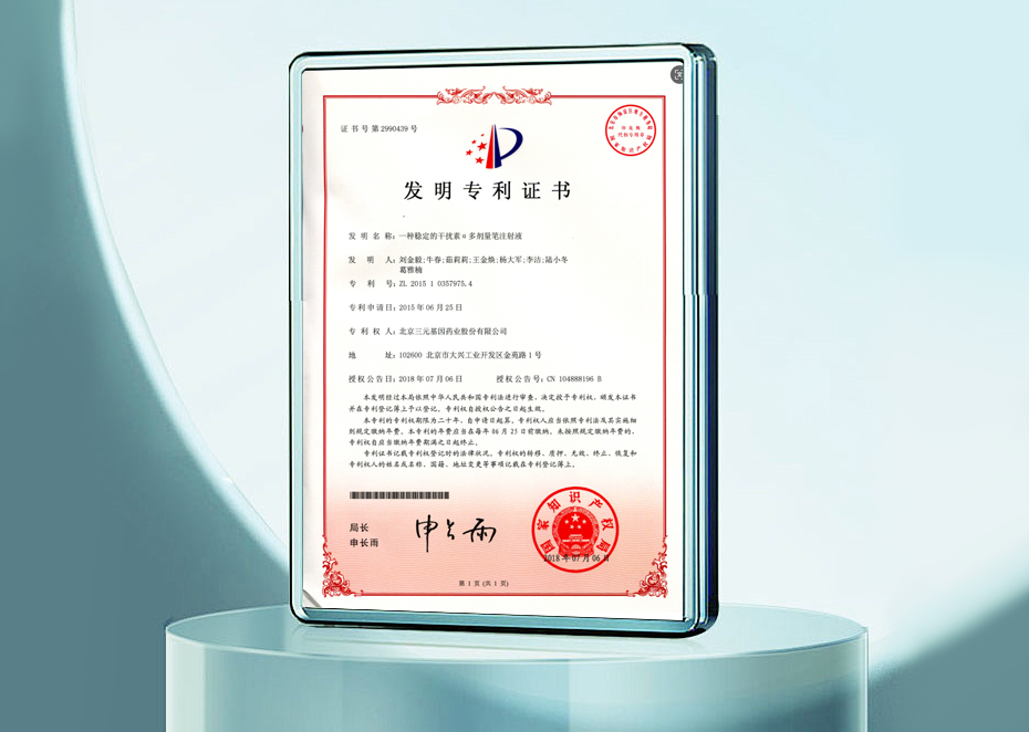 發明專利證書-一種穩定的干擾素α多劑量筆注射液