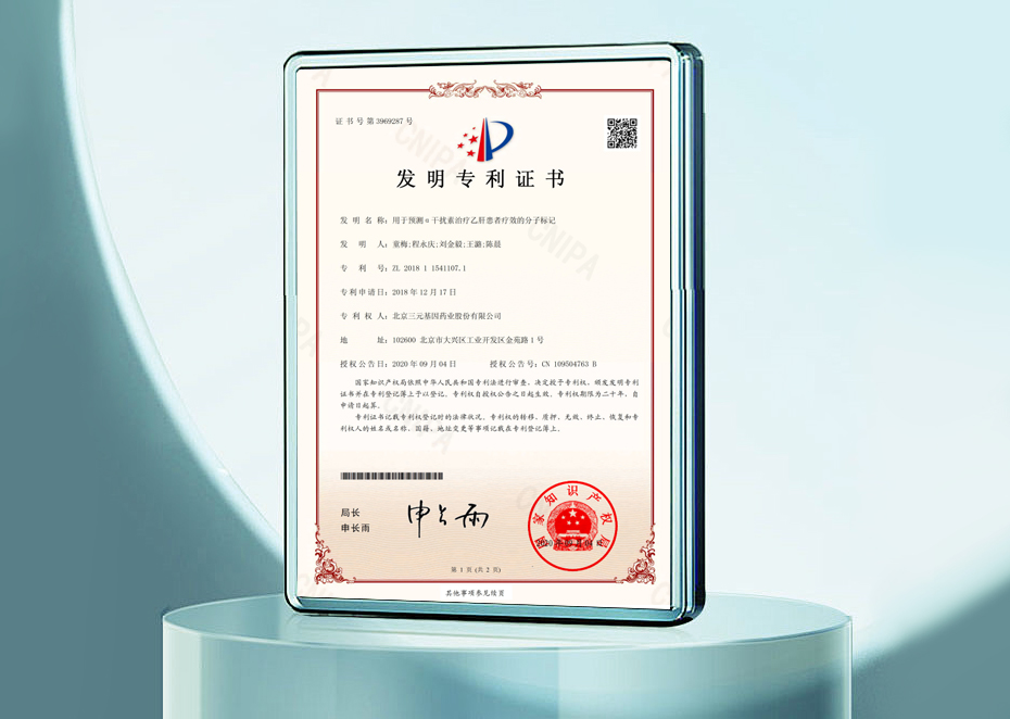 發明專利證書-用于預測α干擾素治療乙肝患者療效的分子標記
