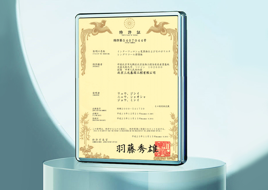 發明專利證書-日本5407044--干擾素α突變體及其聚乙二醇衍生物