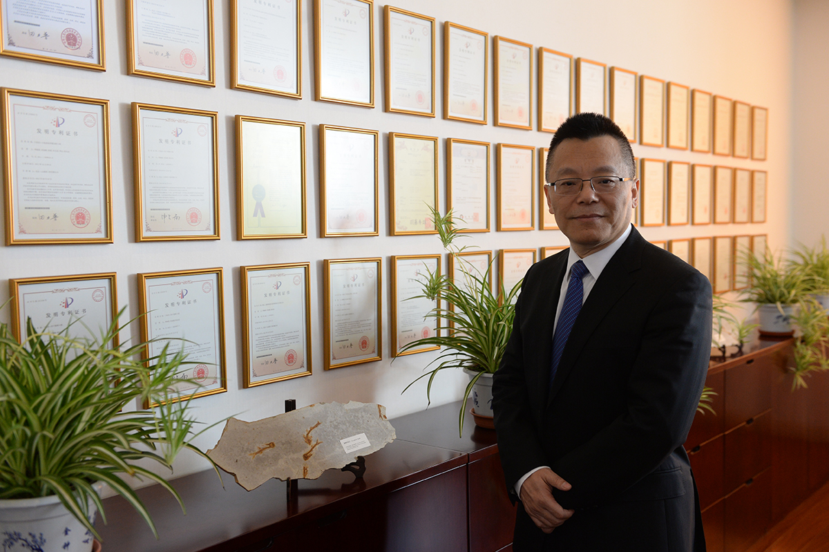程永慶辦公室里的專利墻