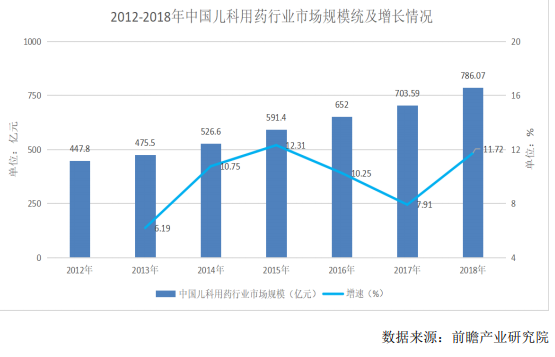 我國兒童用藥市場,不論是在規模上,還是在增速上,都較為可觀。數據顯示,2018年,我國兒科用藥市場規模達到786億元,同比增長11.72%,據預計2020年市場規模在千億元以上。