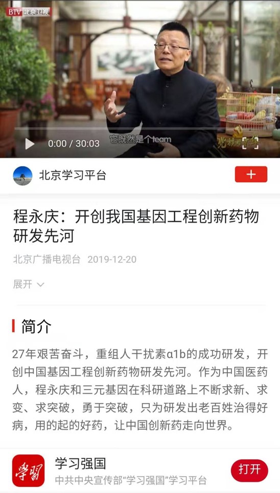 視頻鏈接:程永慶:開創我國基因工程創新藥物研發先河