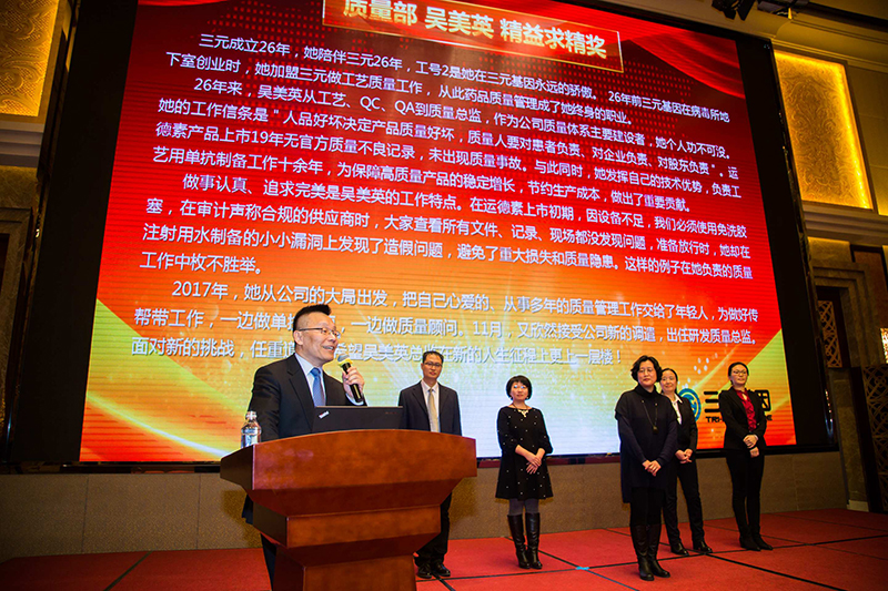 會(huì)上,三元基因董事長(zhǎng)兼總經(jīng)理程永慶對(duì)行業(yè)變革、市場(chǎng)動(dòng)向等進(jìn)行了全面闡述與深刻剖析,同時(shí),他分別對(duì)公司2017年度的生產(chǎn)質(zhì)量工作、市場(chǎng)銷售工作、新品研發(fā)工作、資本經(jīng)營(yíng)工作等各方面的工作成果進(jìn)行了全面總結(jié)與系統(tǒng)回顧,對(duì)公司全體員工在2017年的努力和付出表示了充分的肯定與感謝。最后,程永慶董事長(zhǎng)兼總經(jīng)理向全體員工宣布了三元基因2018年的年度計(jì)劃、工作目標(biāo)。