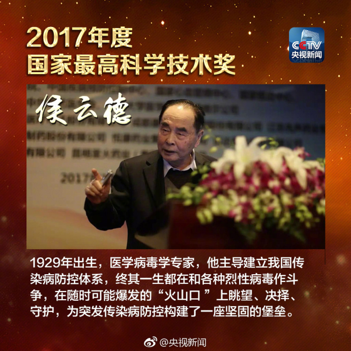 他,是2017年度國家最高科學(xué)技術(shù)獎獲獎?wù)?mdash;侯云德院士。