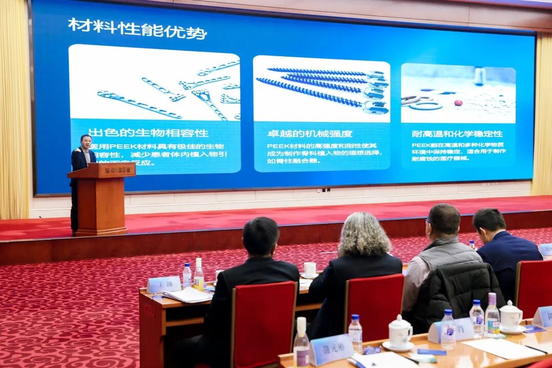會(huì)議中場(chǎng)環(huán)節(jié),川大北京創(chuàng)聯(lián)校友發(fā)展顧問、川大技術(shù)轉(zhuǎn)移集團(tuán)董事兼COO李君輝校友帶來高端醫(yī)用聚醚醚酮材料及器械全產(chǎn)業(yè)鏈國產(chǎn)化的項(xiàng)目發(fā)布,他從醫(yī)用peek材料特性及應(yīng)用場(chǎng)景、國內(nèi)外市場(chǎng)現(xiàn)狀、項(xiàng)目創(chuàng)始團(tuán)隊(duì)優(yōu)勢(shì)和產(chǎn)業(yè)鏈國產(chǎn)化布局角度進(jìn)行了系統(tǒng)的展示和講解。