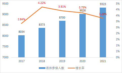 圖表3:2017-2021年退休職工參保人數統計 單位(萬人)