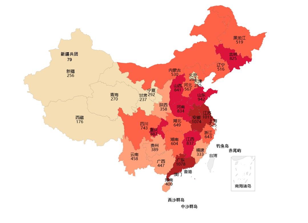 2021年國家藥品抽檢共抽取制劑產品與中藥飲片品種139個,包括化學藥品81個、中成藥46個、中藥飲片9個、生物制品3個,其中國家基本藥物品種53個;共抽檢樣品17856批次,包括生產環節3965批次、經營環節12409批次、使用環節1250批次和口岸環節232批次(見圖1),涉及1113家藥品生產企業、2085家藥品經營企業和486家藥品使用單位,各省(區、市)樣品抽取情況以及所抽取樣品的標示生產企業所在地區抽樣分布情況,分別見圖2與圖3。