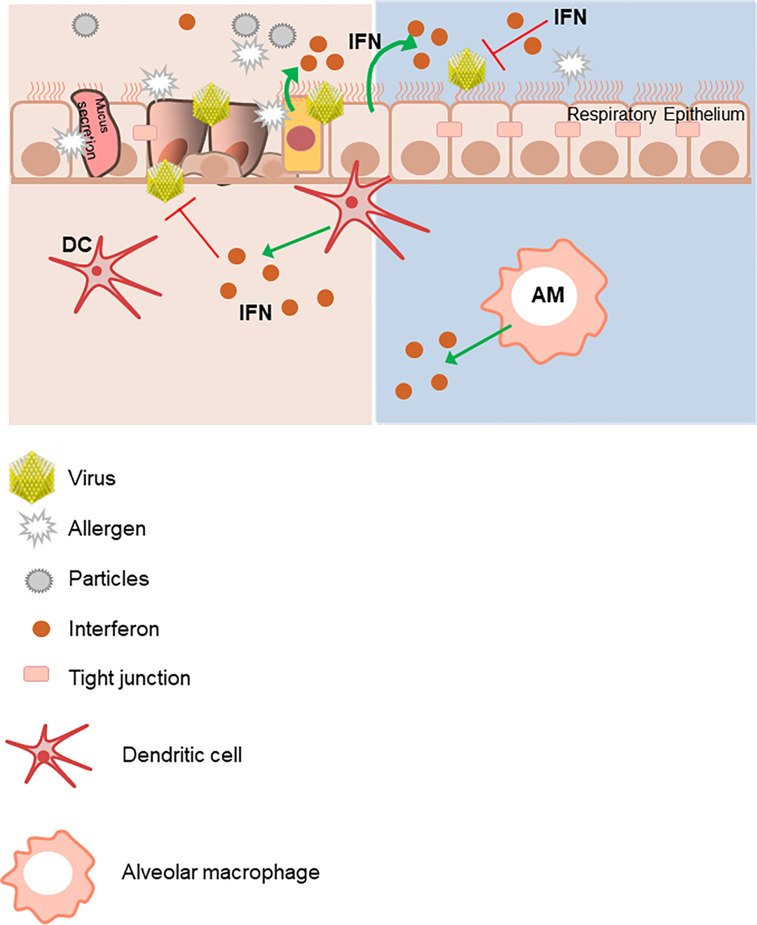 干擾素(IFN)在介導(dǎo)早期抗病毒反應(yīng)中起著重要作用,尤其是 I 型(IFN-α/β)和 III 型(IFN-λs)IFN,受損的 IFN 反應(yīng)可能在哮喘的發(fā)展中起著重要作用。小鼠敲除模型證明了 IFN-α/β 在控制病毒復(fù)制中的重要性,IFN-λs 研究報告表明,它們可抑制病毒復(fù)制和過敏性氣道炎癥。
