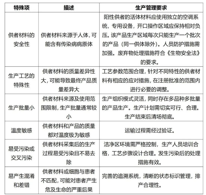 確保生產(chǎn)全過程樣品和生產(chǎn)物料(包括從細(xì)胞/組織采集過程、生產(chǎn)、運輸?shù)脚R床應(yīng)用整個過程)的可追溯性。